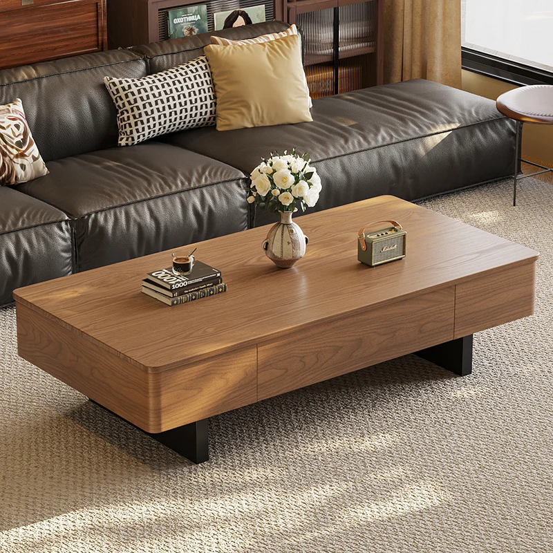 Medieval style coffee table with drawer living room modern simple walnut storage cabinet end table Black table legs $380.62