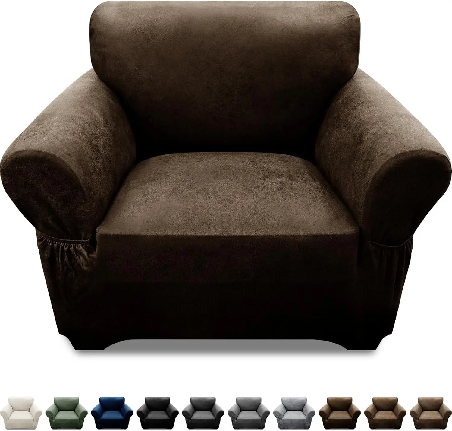 Leather Look Stretch Sofa Cover with Elastic Bottom & Pockets, Single Armchair Protector for Living Room Furniture $36.20