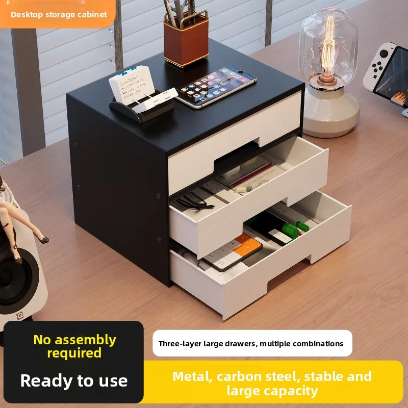 Minimalist Carbon Steel Drawer Cabinet Desk File Organizer Multi-Tier Bookshelf Large Capacity Storage Rack for Office & Student $33.73