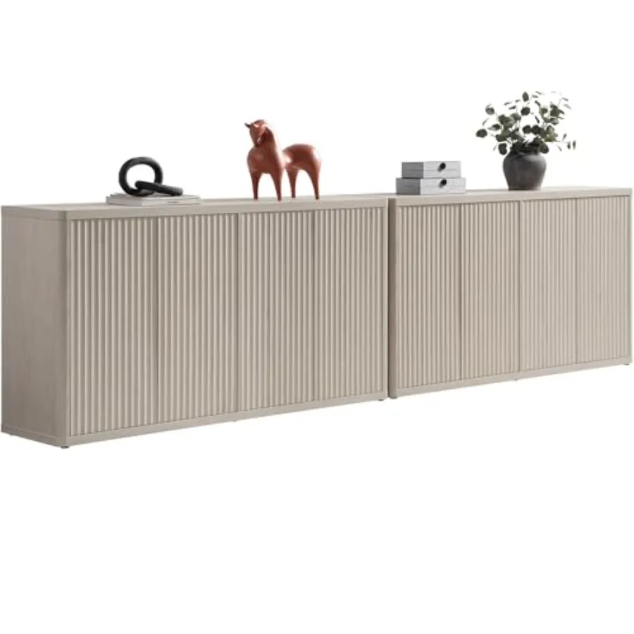 Modern Fluted Buffet Cabinet with 8 Doors 132.6 Storage Sideboard for Living Room Kitchen Dining Room Hallway Entryway Furnitur $831.63