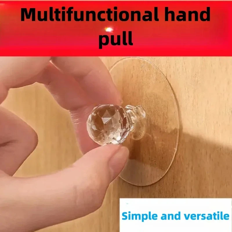 Transparent Crystal Door & Drawer Knobs (10/20PCS) - Self-Adhesive Handles with Hook Design for Cabinets, Doors and Wall Decorat $3.43