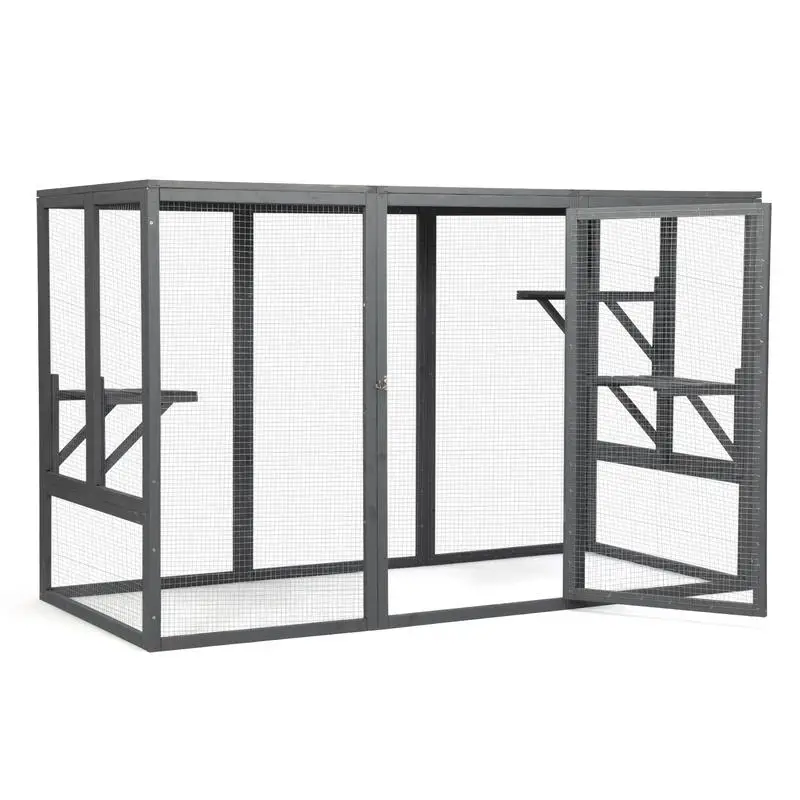 76" Wooden Rabbit Hutch with Waterproof Roof, Outdoor Run, Removable Tray & Ramp, Light Blue Finish $772.90
