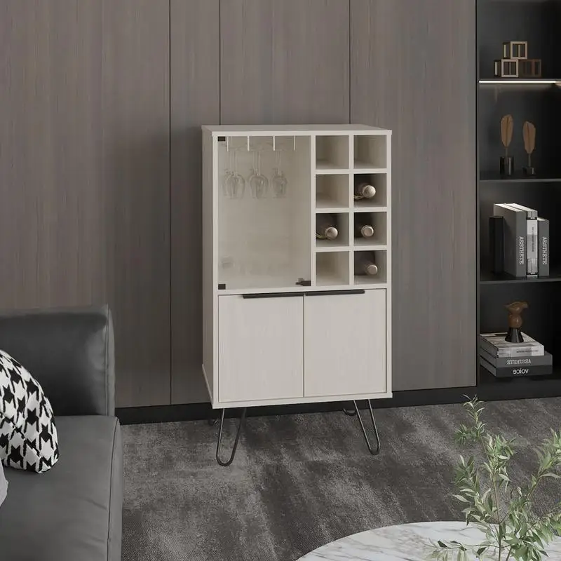 23" Wide Double Door Bar Cabinet with Glass Door, Eight Bottle Cubbies, and Stemware Storage Solution $303.11