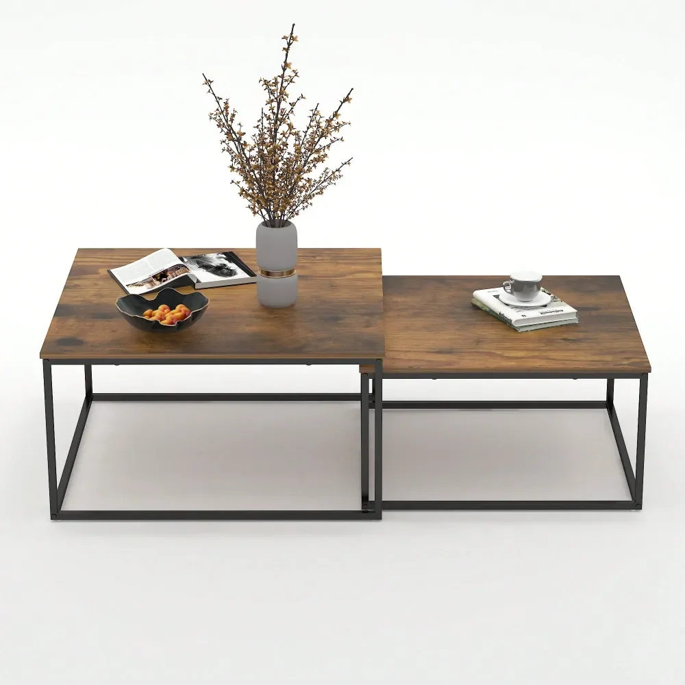 Table,Nesting Coffee Table Set Of 2,Square Table With Steel Frame,Industrial Living Room Coffee Table, Living Room Furniture,Li $208.04