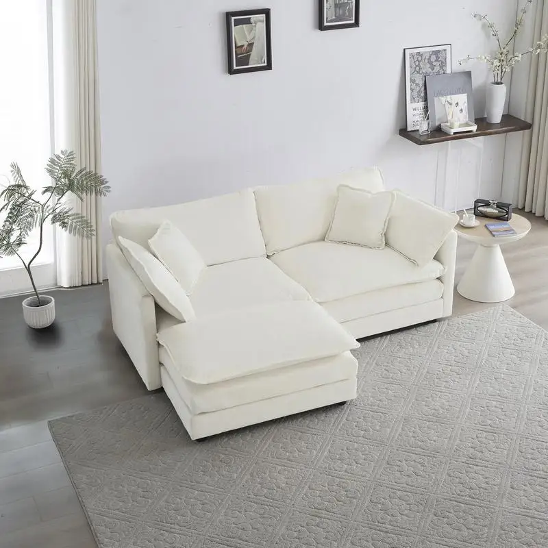 Chenille 2-Seater Sofa with Ottoman, L-Shaped Loveseat for Small Living Spaces, White Sectional Couch with Footrest $992.16
