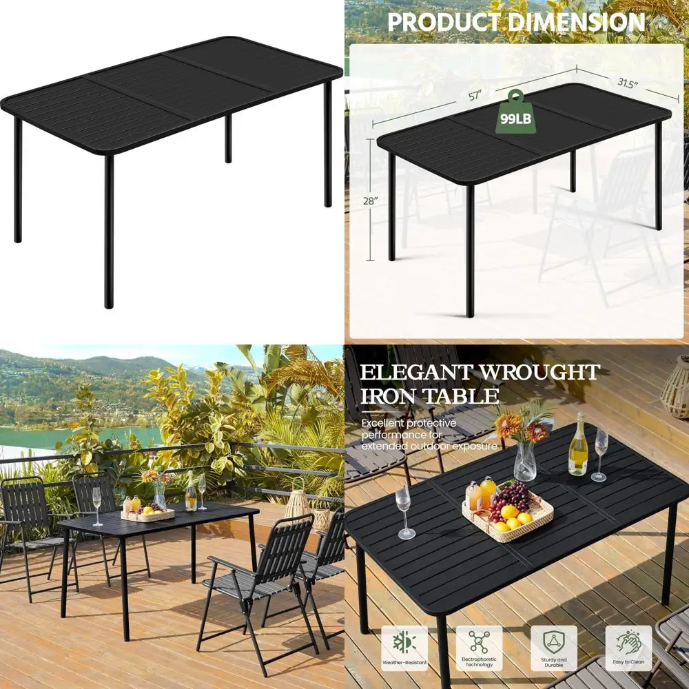 Rectangular Slatted Metal Outdoor Dining Table for 6, Patio Garden Lawn Backyard Furniture, Black $91.61