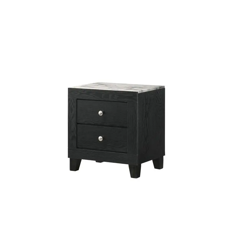 Contemporary Modern White Faux Marble Top Nightstand with 2 Drawers and Black Finish for Bedroom Furniture $247.54