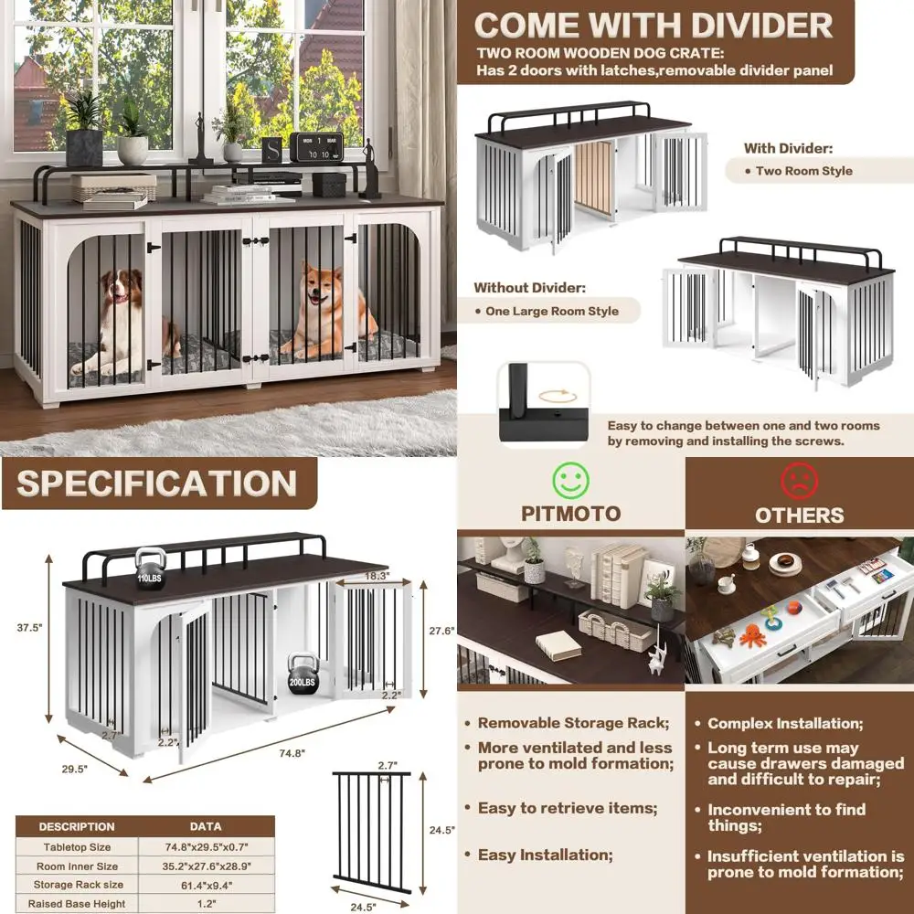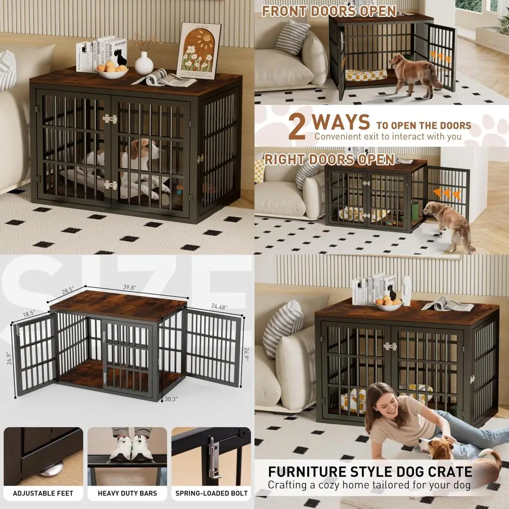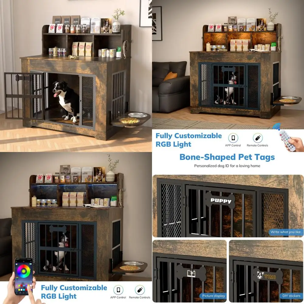 Wooden Corner Dog Crate Furniture for Medium to Large Dogs, Indoor Pet House with Two Stainless Steel Food Bowls $199.42