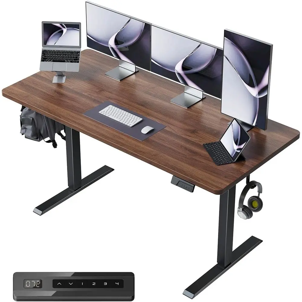 Adjustable Height Electric Standing Desk, 60 x 24, 4 Memory Settings, Headphone Hook, Black Walnut Finish for Home Office Use $285.28