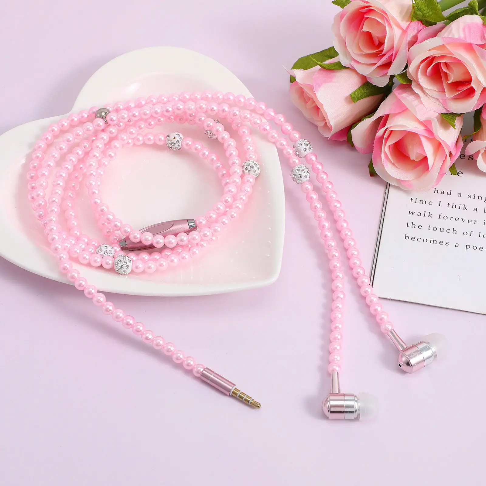 Pearl Chain Design Wired -Ear Headset Earphone with Mic Remote Noise Cancelling Earbuds Hands-Free for Sports Running $7.35