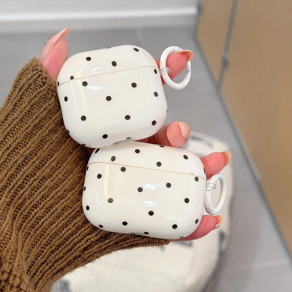 Cute Milky White Grey Wave Point Soft Headphone Cover With Keychain for AirPods 1 2 3 4 Pro 3 Pro2 Earphone Protection Case $5.00
