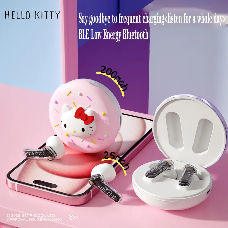 Sanrio Kuromi Hello Kitty TWS Half in ear style Cute Wireless Bluetooth Earphones Cute Doughnut Style Birthday Gifts $19.34