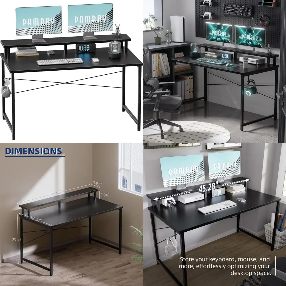 Compact 47 Inch Desk for Small Spaces with Monitor Stand, Ideal for Kids Study and Office Use, Complete with Headphone Hook $117.17
