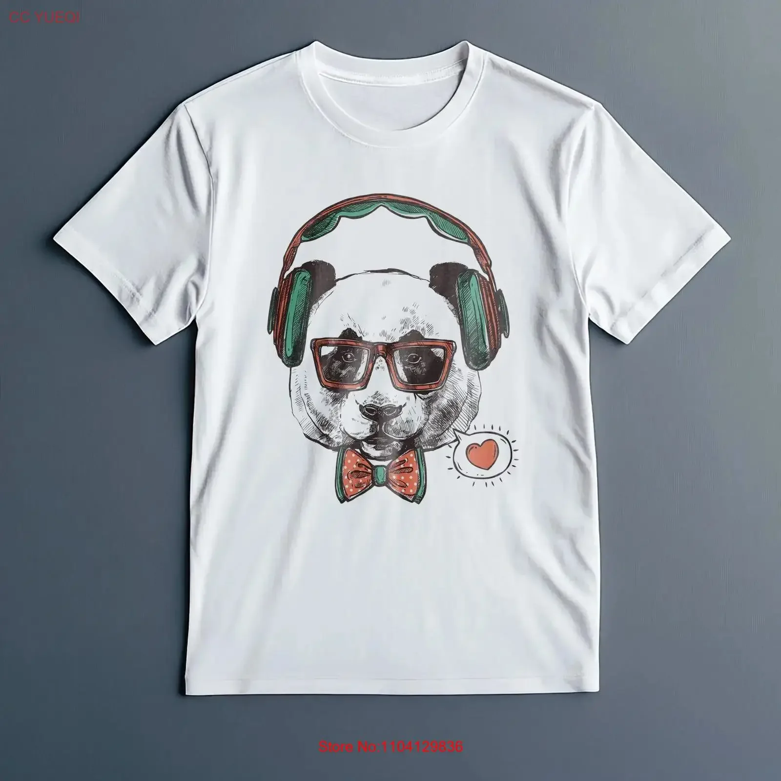 Cool Panda With Headphones T Shirt Funny Music Lover Retro Hipster For Animal Fans Cute vintage Washed Soft Versatile homme $7.69