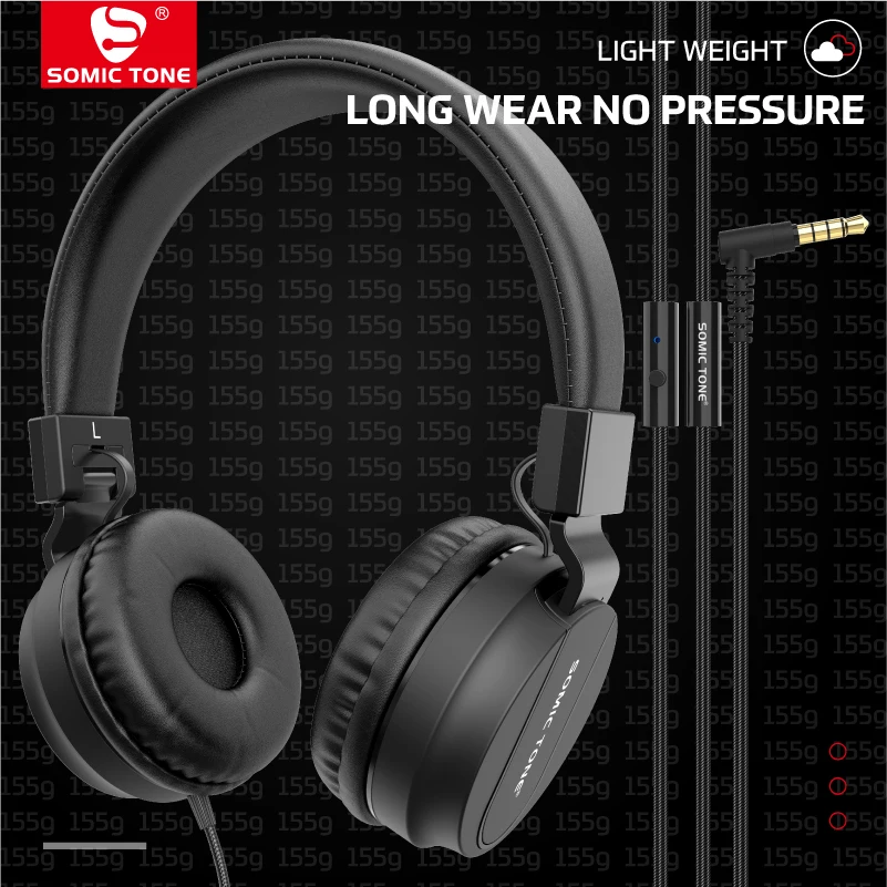 SOMIC TONE Universal Wired Headphones Over Ear Foldable Earphones HiFi Stereo Sound Portable Headset 3.5mm Headphone With Mic $12.03