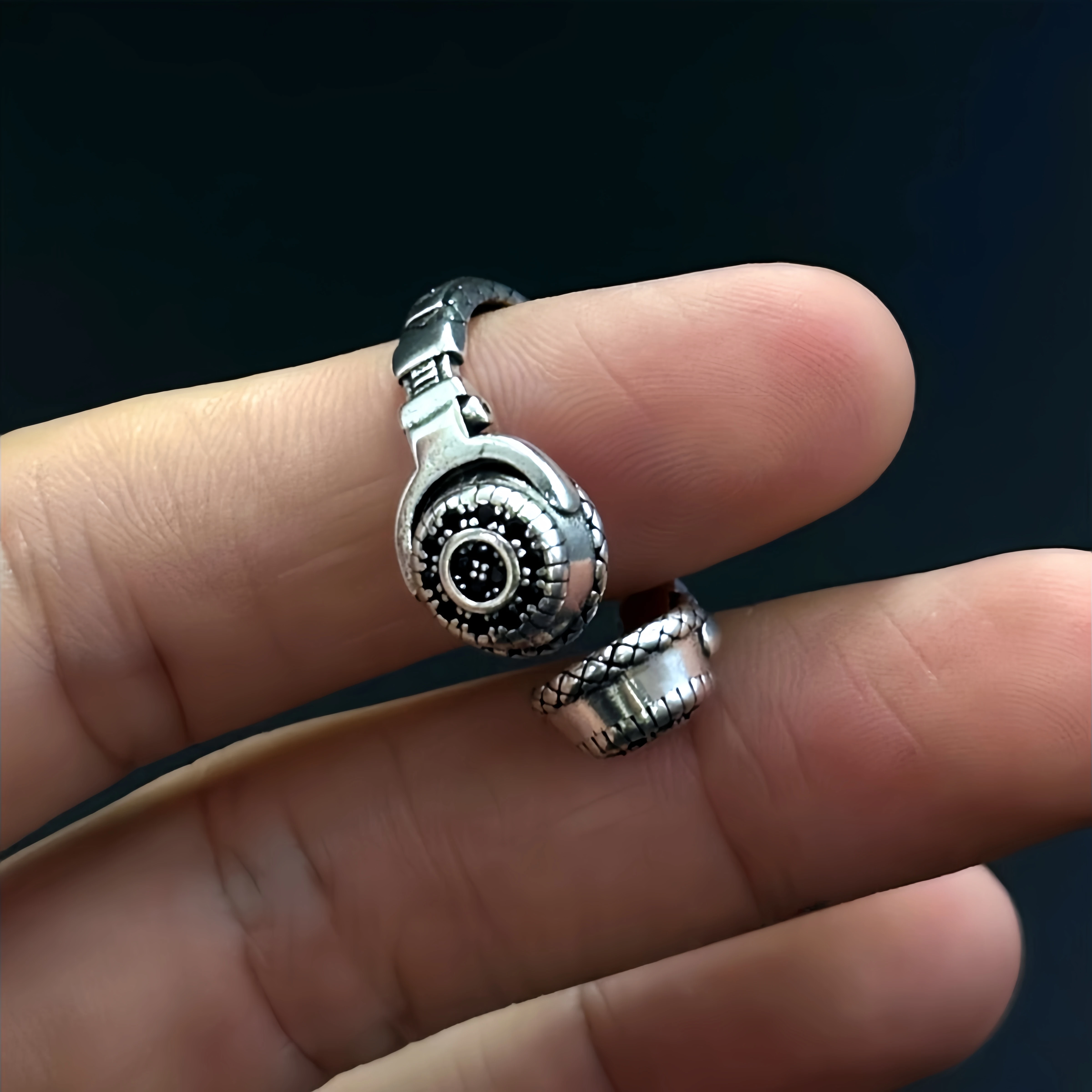 Retro Headphones Adjustable Open Ring For Men Silver-plated Copper Punk Gothic Edgy Jewelry Trendy Accessories Music Lovers Gift $3.46