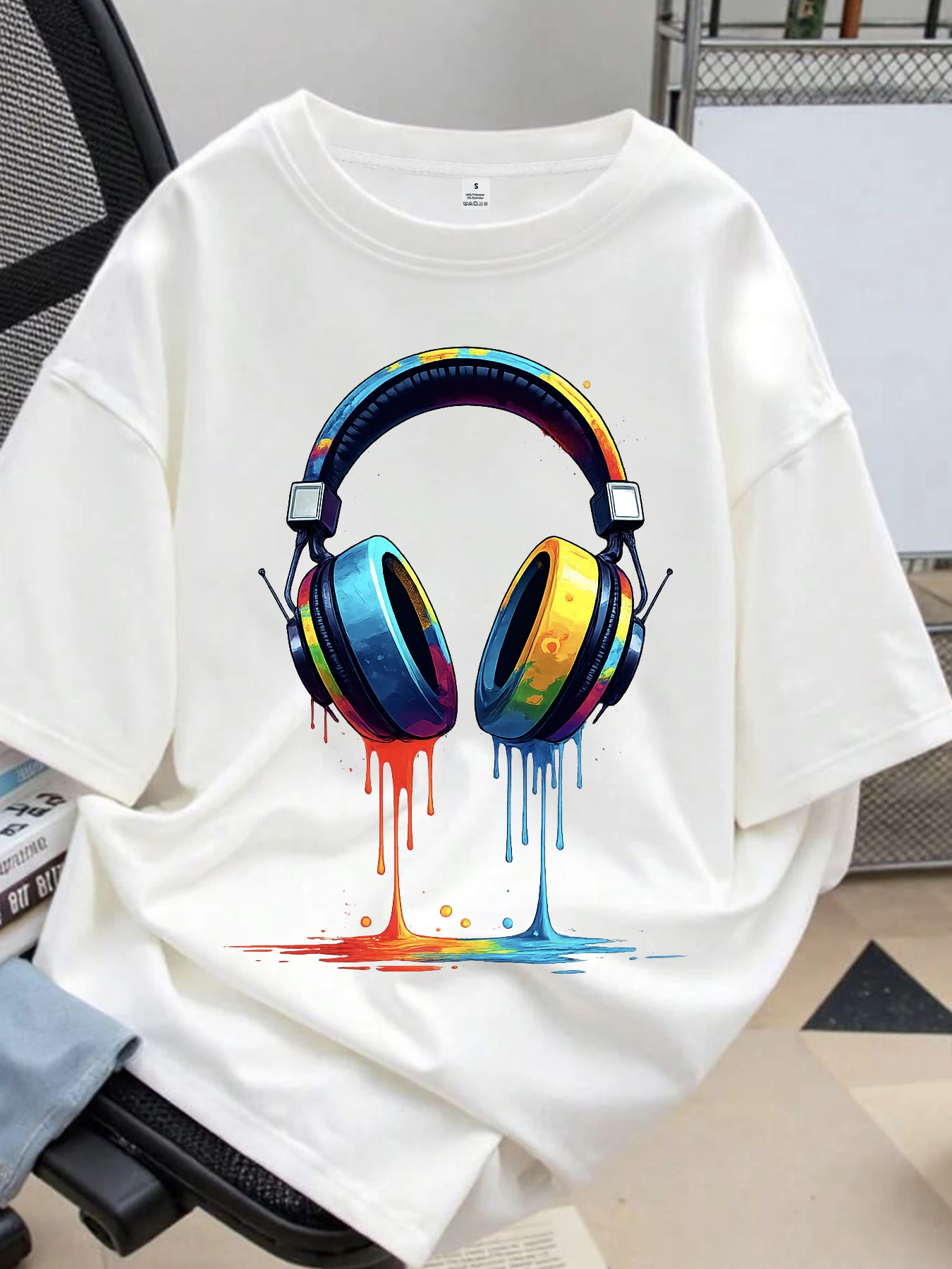 【ZXH10678】Colorful headphone printed women's round neck T-shirt summer casual short sleeved top street fashion women's versatile $11.89