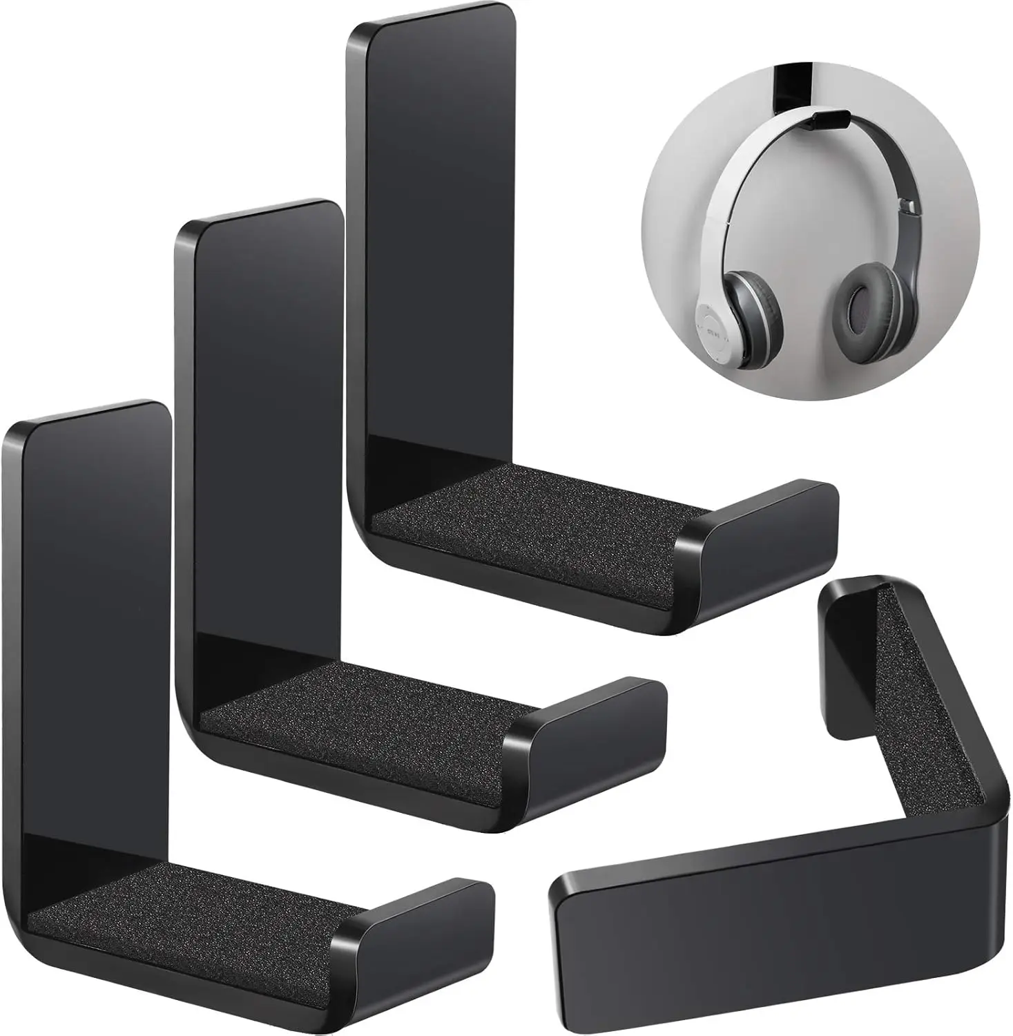 4-Pack Adhesive Headphone Hanger Hook - Wall Mount Desk Stand for Gaming Earphones & Headphones (Black) $8.38