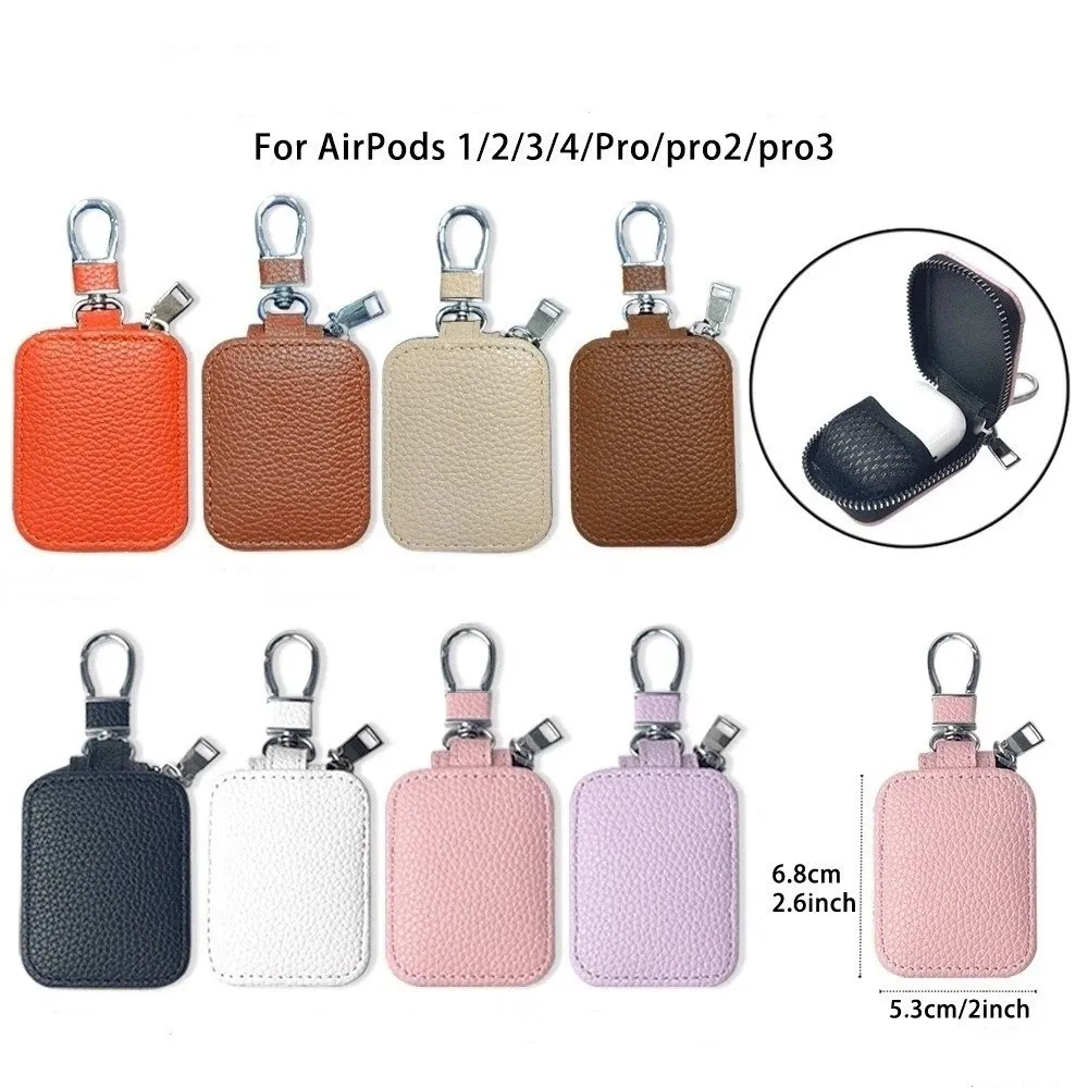 Leather Earphone Bag Lightweight Lychee Texture Headphone Storage Bag with Keychain Zipper Bag for AirPods Pro3/Pro2/AirPods 4 $4.57