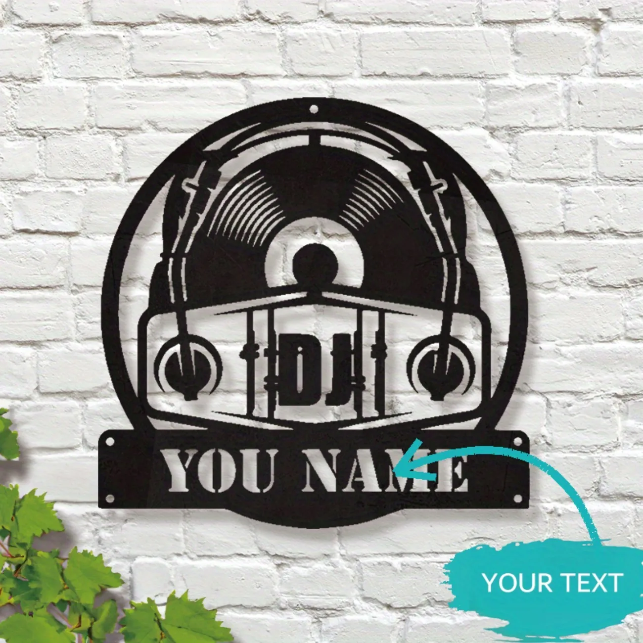 Custom DJ Disc Jockey Metal Wall Art - Exquisite 1-Piece Design with Headphones & Personalized Name, Ideal Home Decor. $19.08