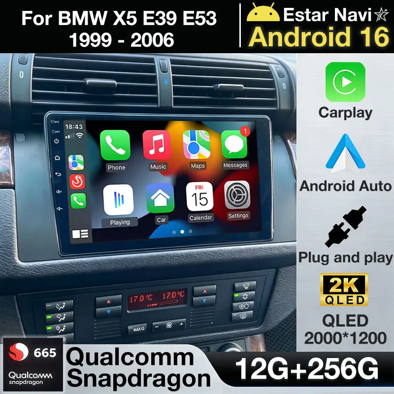 Android 16 Car Radio For BMW X5 E39 E53 1999 - 2006 Multimedia Head Unit QLED Carplay Player Navigation Stereo DSP BT 360 Camera $202.11