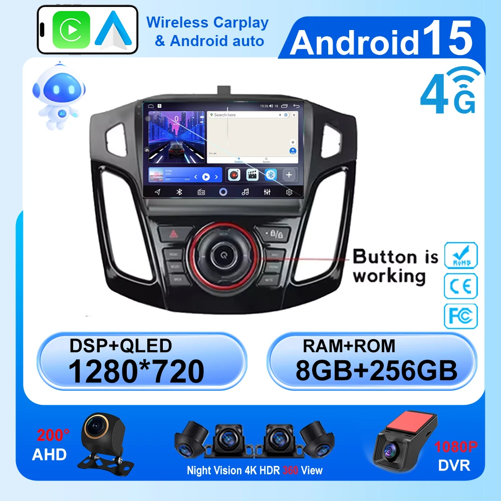 Android 15 Multimedia Head Unit For Ford Focus 3 Mk 3 2011 2012 2013 2014 2015-2019 Car Player GPS Stereo Navigation Auto Radio $104.44