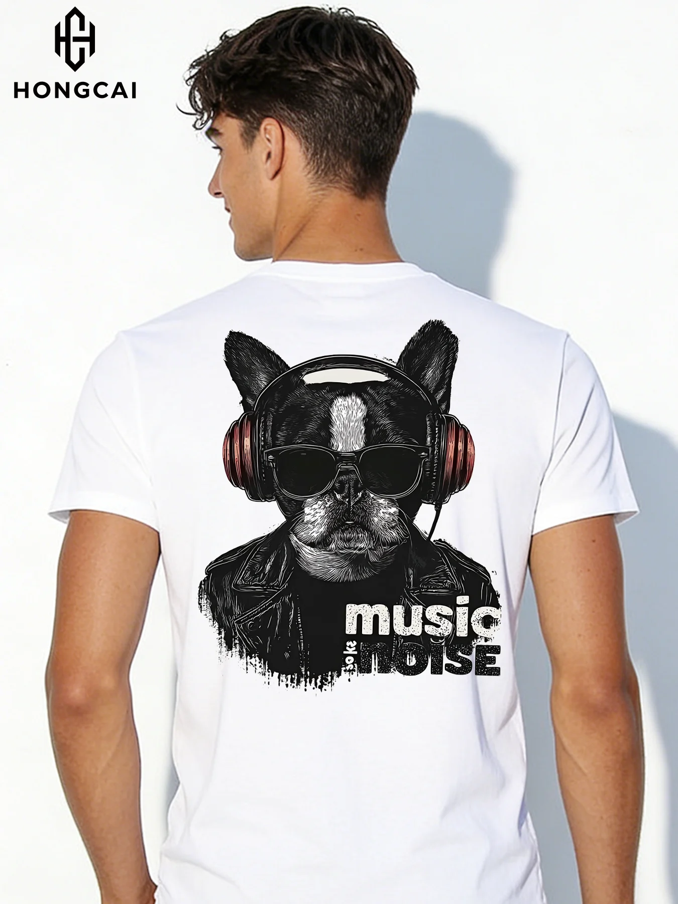 French Bulldog with Red Headphones and Sunglasses Trendy Music Street Style Design Print Summer Men's Crew Neck Casual T-Shirt $5.19