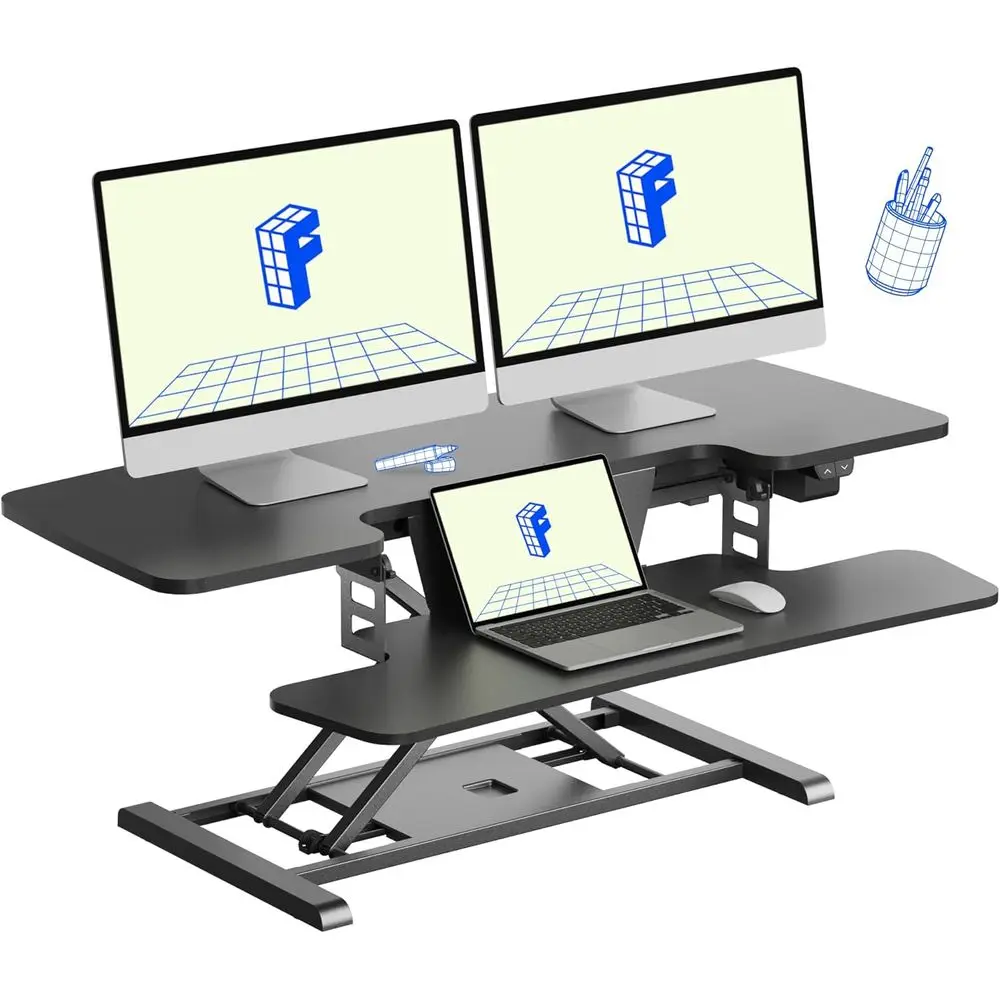 42 Adjustable Electric Standing Desk Converter with Quick-Release Keyboard Tray, Black Laptop and Monitor Workstation $478.77