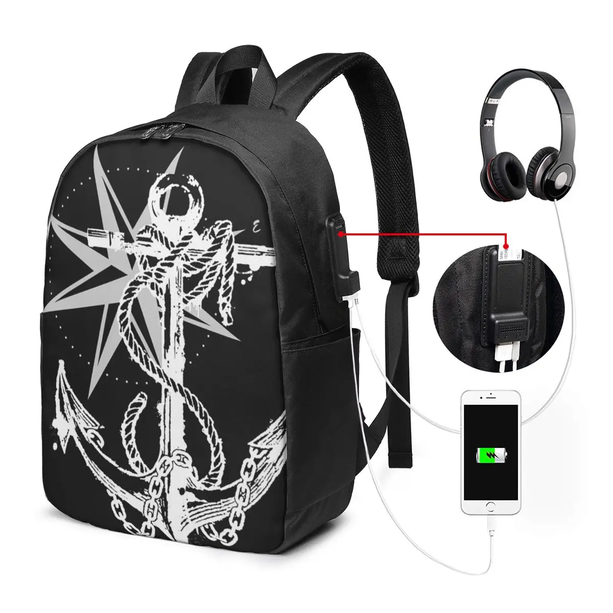 Nautical Compass Captain Anchor Boat Backpack Travel Notebook Bag Computer College Student School Bag Laptop Shoulder Bags $19.43