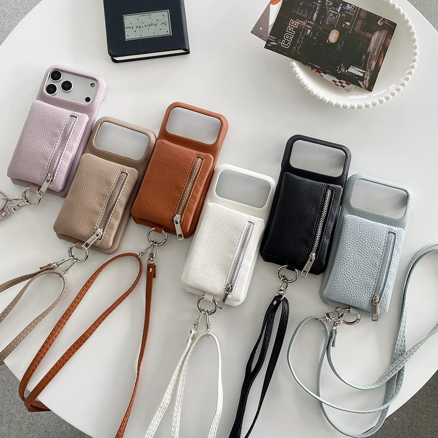 Portable Zipper Card Pocket Phone Case for iPhone 17 Air 16 15 Plus 14 13 12 11 Pro Max Detachable 2 in 1 Leather Lychee Cover $5.39
