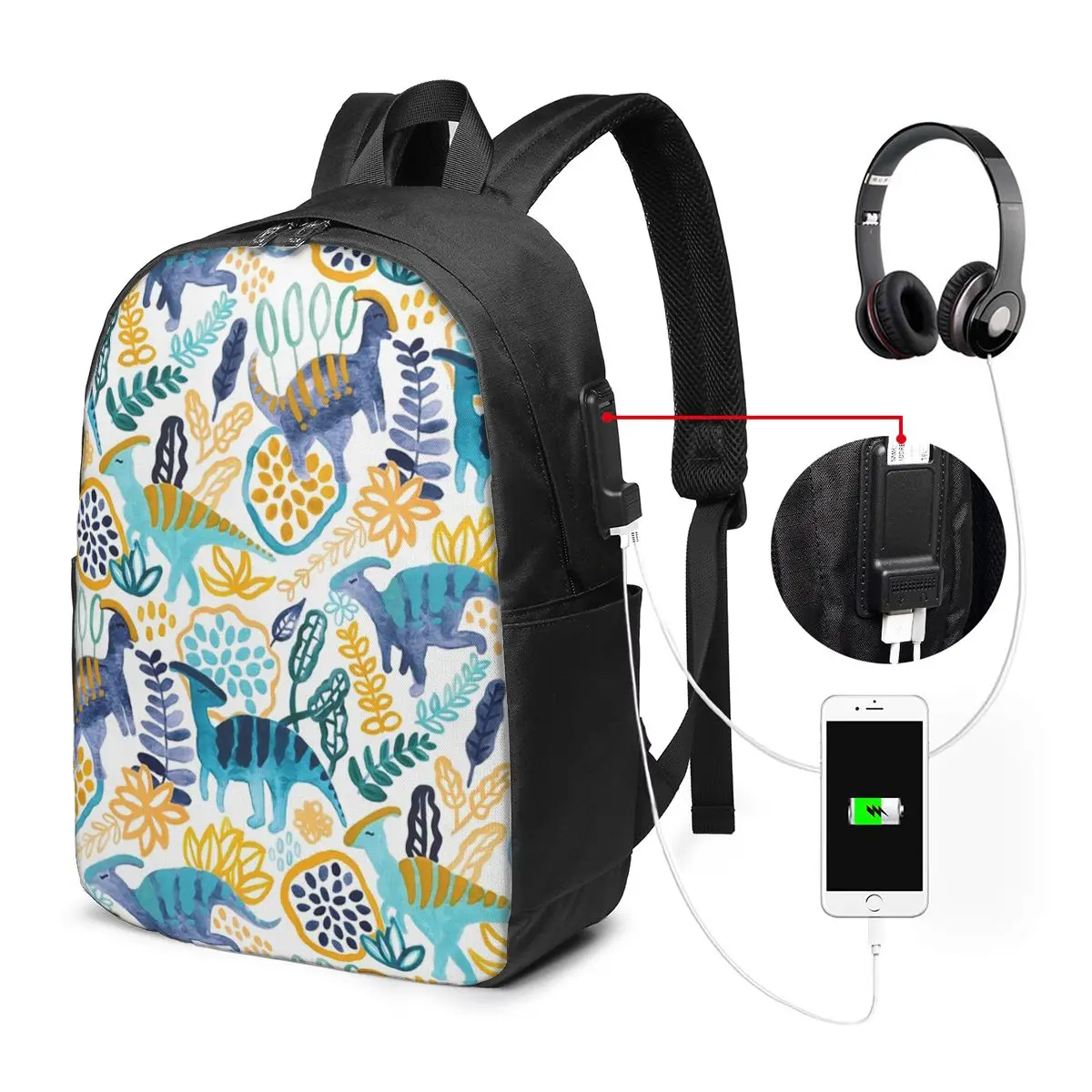 Gouache Parasaurolophuses Backpack Travel Notebook Bag Computer College Student School Bag Laptop Shoulder Bags for Men Women $19.43