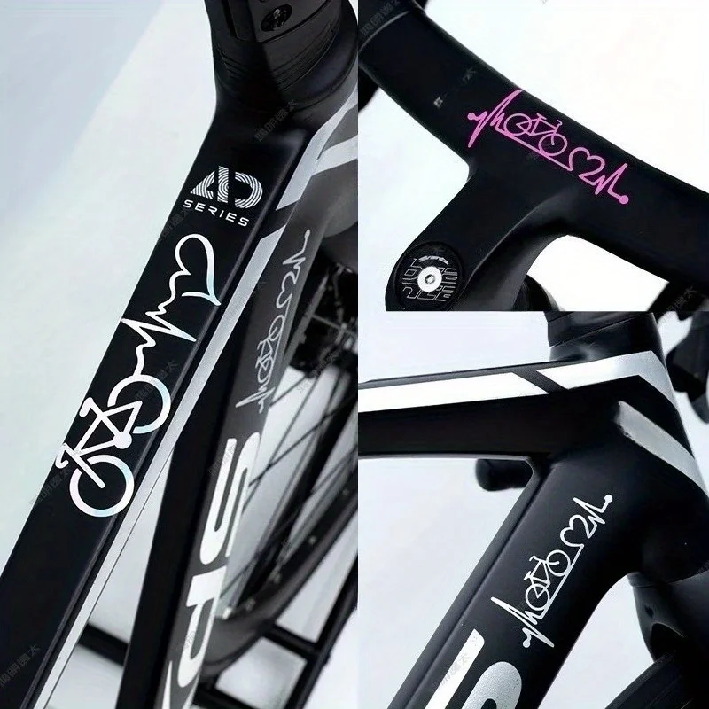 1SET Bike Heartbeat" Cycling Sticker - Artistic Bicycle &Heartbeat Design Decals for Bikes, Laptops & Cycling Enthusiasts' Decor $4.08