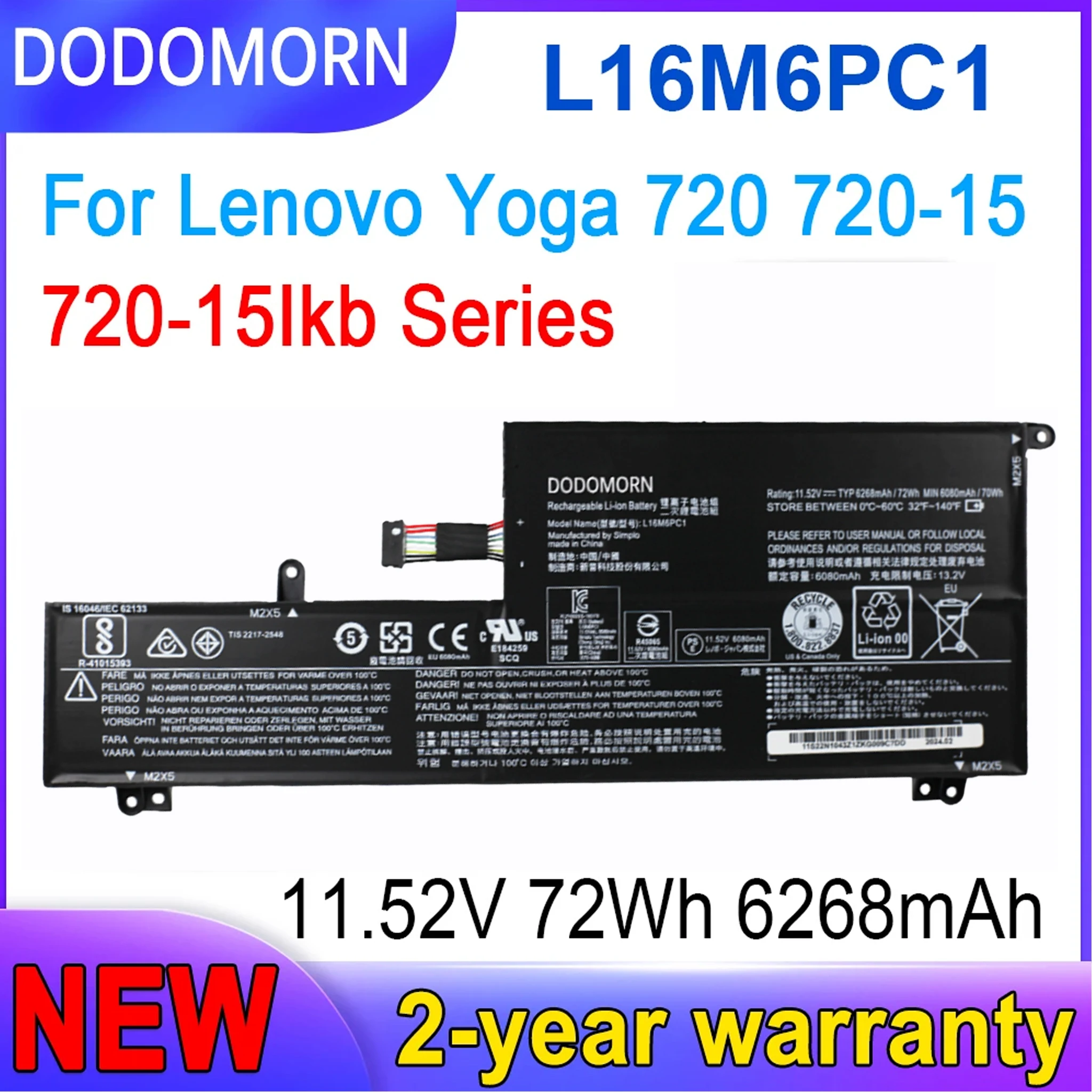 New Lenovo Laptop battery 16M6PC1 DODOMORN For Lenovo Yoga 720 720-15 720-15lkb Series L16L6PC1 L16C6PC1 L16M6PC1 3ICP4/43/110 $46.93