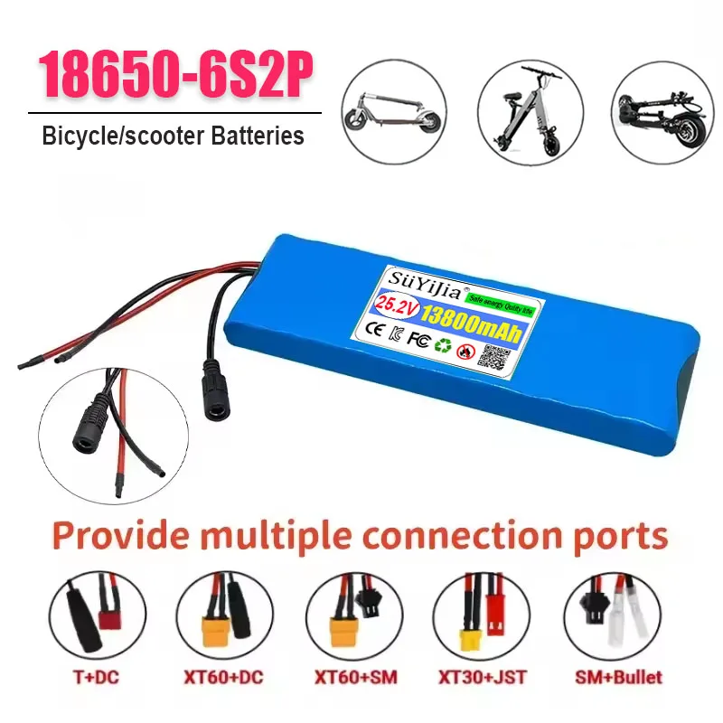 6s2p 25.2V 13.8Ah 18650 Lithium-ion Battery 24V 13800mAh Lithium-ion Battery, Suitable for Bicycle/scooter Batteries $20.11