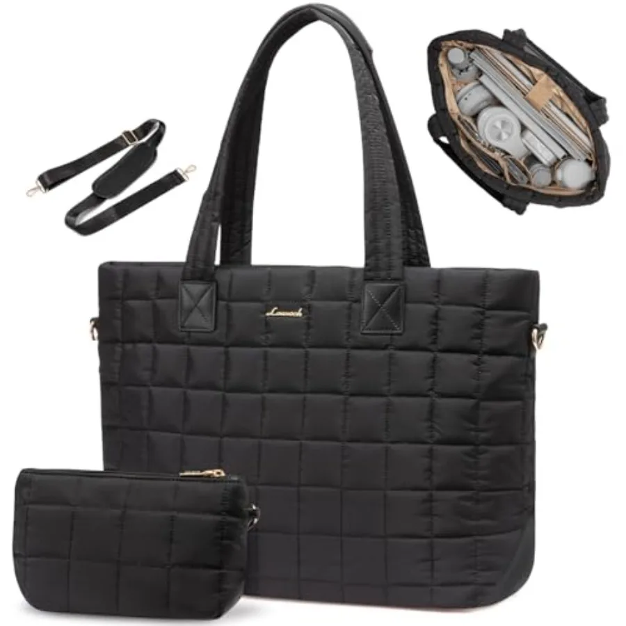 Laptop Tote Bag for Women Large Puffer Work Computer Tote Bags for Teacher Nurse Quilted Women's Purse Tote Shoulder Handbags w $50.13