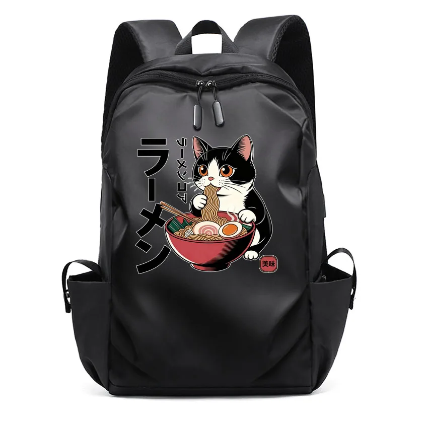 Laptop Usb Backpack School Bag Funny Cartoon Anime Ramen Cat Pattern Printed Rucksack Backbag Male Women Leisure Backpack $8.81