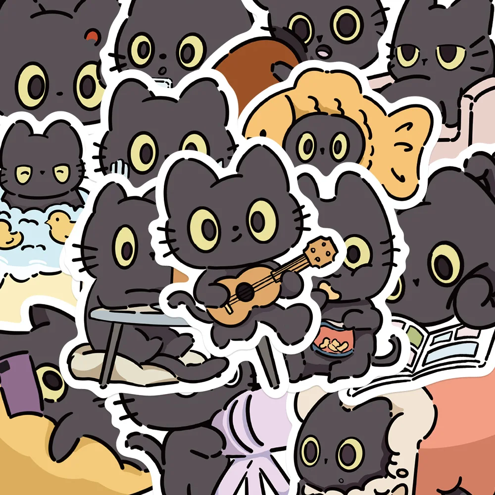 50pcs Naughty Little Black Cat Stickers Cute Cartoon Animals Decal DIY Handbook Laptop Phone Suitcase Helmet Stickers For Teens $3.40