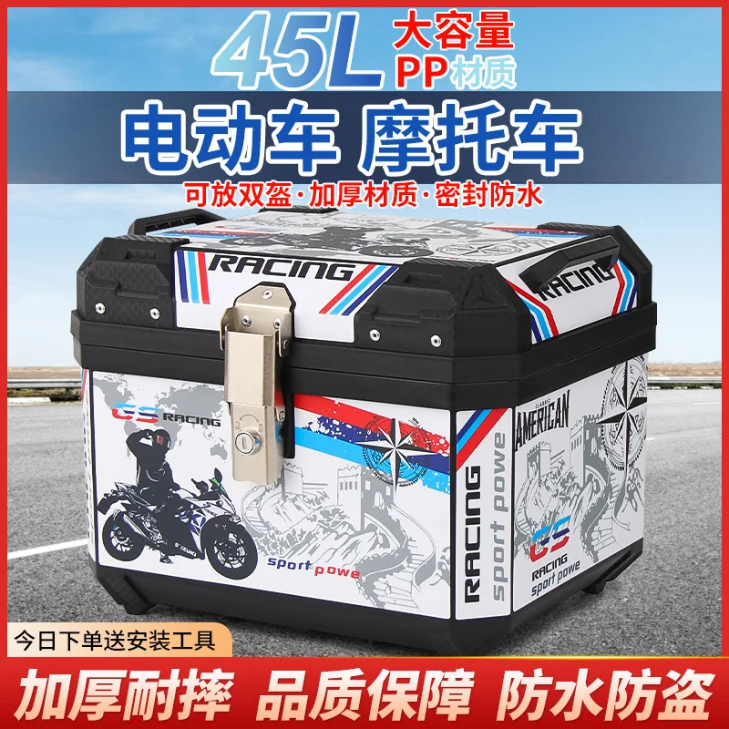 Motorcycle Trunk Large Capacity Pedal Electric Vehicle Trunk Battery Car Non-aluminum Alloy Tool Luggage Universal $61.15
