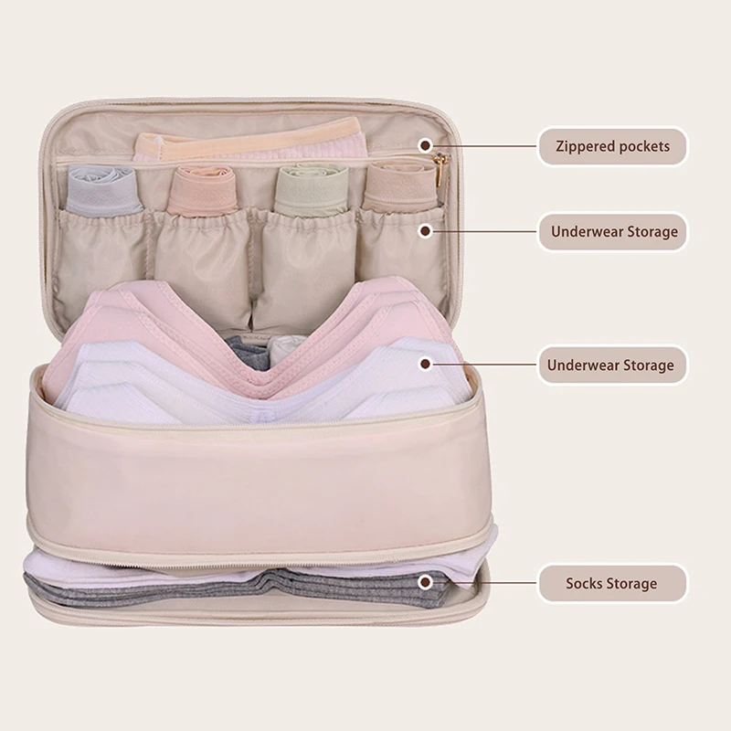 Travel Storage Bag Portable Underwear Pantyhose, Socks Organizing Bag, Double Layer Large Capacity Luggage Bag Travel Essentials $12.10