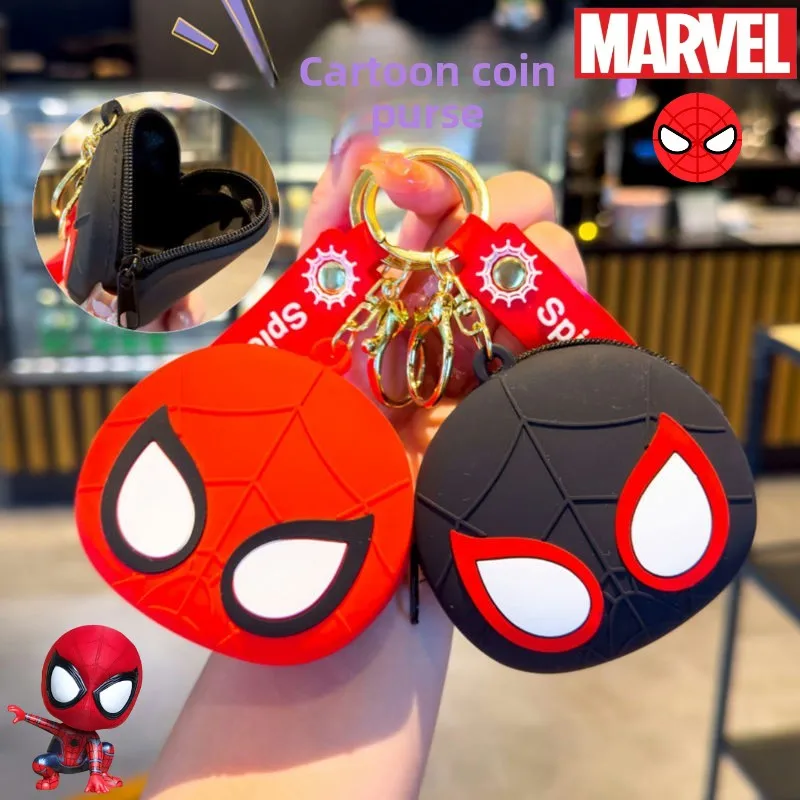 Creative Marvel Spiderman New Cool Anime Cartoon Shape Silicone Coin Storage Bag Portable Keychain Pendant for Men and Women $6.13