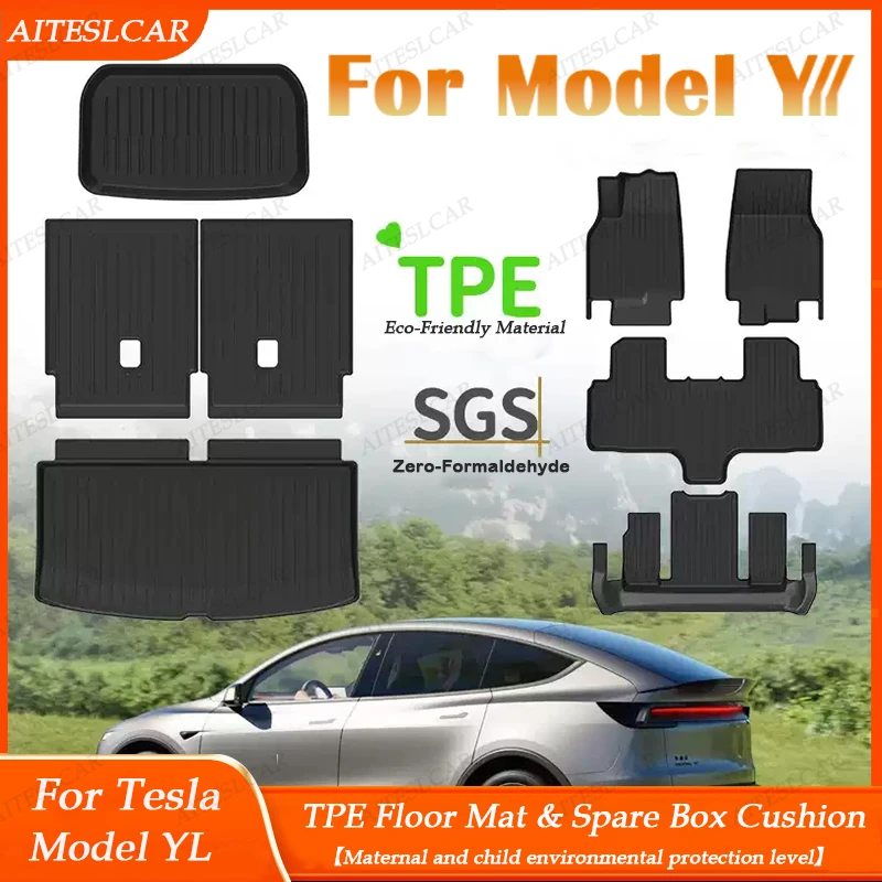 TPE Car Floor Mats For Tesla Model Y L Launch 2026 Luggage Mat Set Four Seasons Waterproof Anti-slip Trunk Mat Seat Backrest Mat $23.21