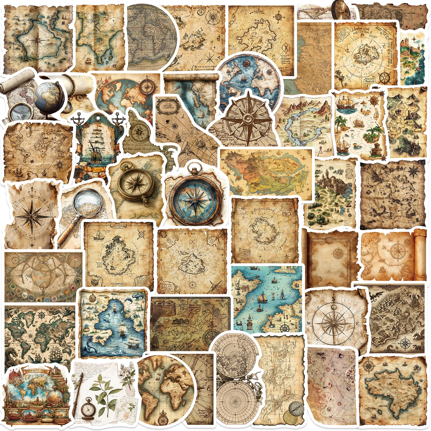 50PCS Retro Travel The Map Stickers Diy Scrapbooking Helmet Car Computer Luggage Waterproof Decoration PVC Sticker Stationery $3.48