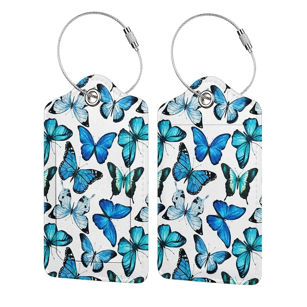 Luggage Tags - 2-Pack PU Leather with Privacy Cover & Stainless Steel Loop - ID Labels for Suitcases & Travel Bags - Blue Bu $14.91