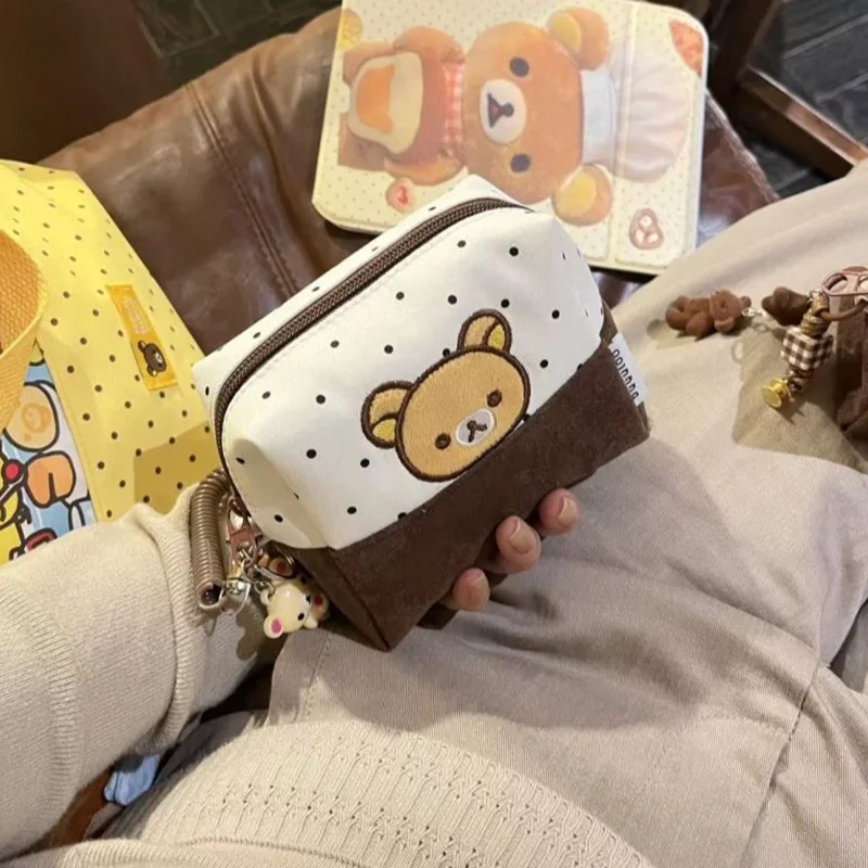 New Cartoon Rilakkuma Makeup Bag Cartoon Large Capacity Polka Dot Toiletry Bag Student Travel Portable Storage Bag Couple Gift $3.00