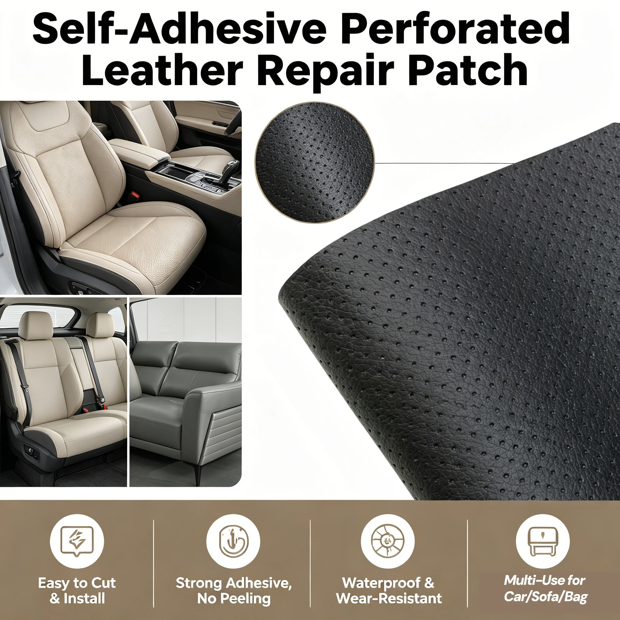 Perforated Leather Repair Patch Breathable Self Adhesive Leather Repair Tape, Large Vinyl Patch Kits for Furniture,Sofa,Car Seat $4.22