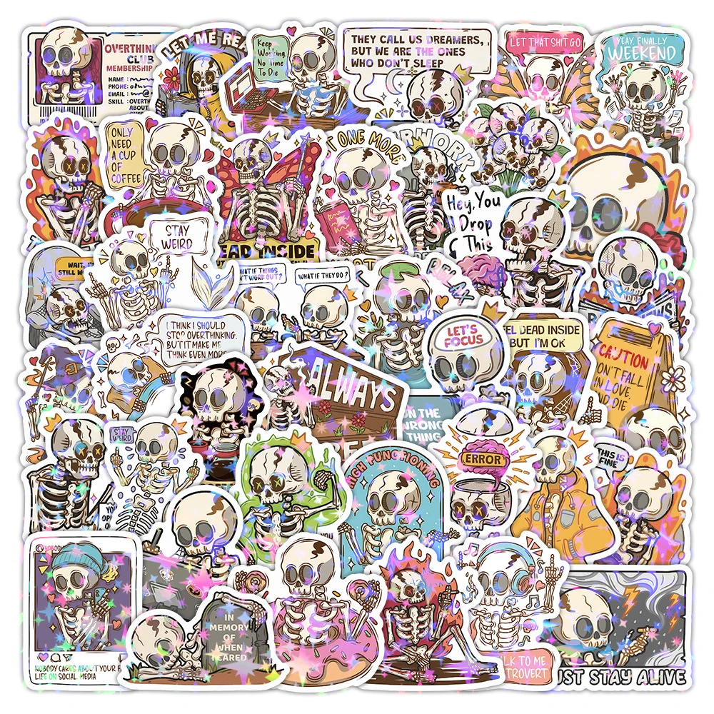 10/30/50pcs Funny Holographic Skull Graffiti Stickers Cute Cartoon Decals for Stationery Luggage Helmet Waterproof Cool Sticker $2.22