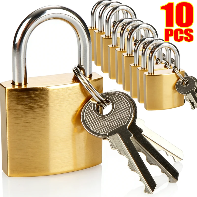 1/10PCS Mini Copper Locks Luggage Case Padlock Backpack Notebooks Security Padlock with Keys Home Improvement Hardware Supplies $3.00