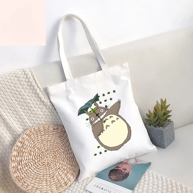 Funny Totoro Spirit Cartoon Ladies Handbag Fashion Canvas Shoulder Bag Eco Large Capacity Shopping Bag Leisure Travel Schoolbag $6.26