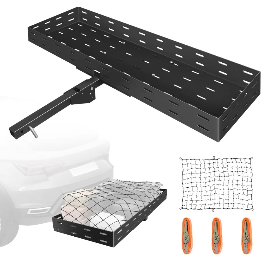60x20x5 Folding Hitch Mount Cargo Carrier Rear Luggage Basket with Net and Ratchet Straps Fit 2 Receiver 400 Lbs Capacity $207.10