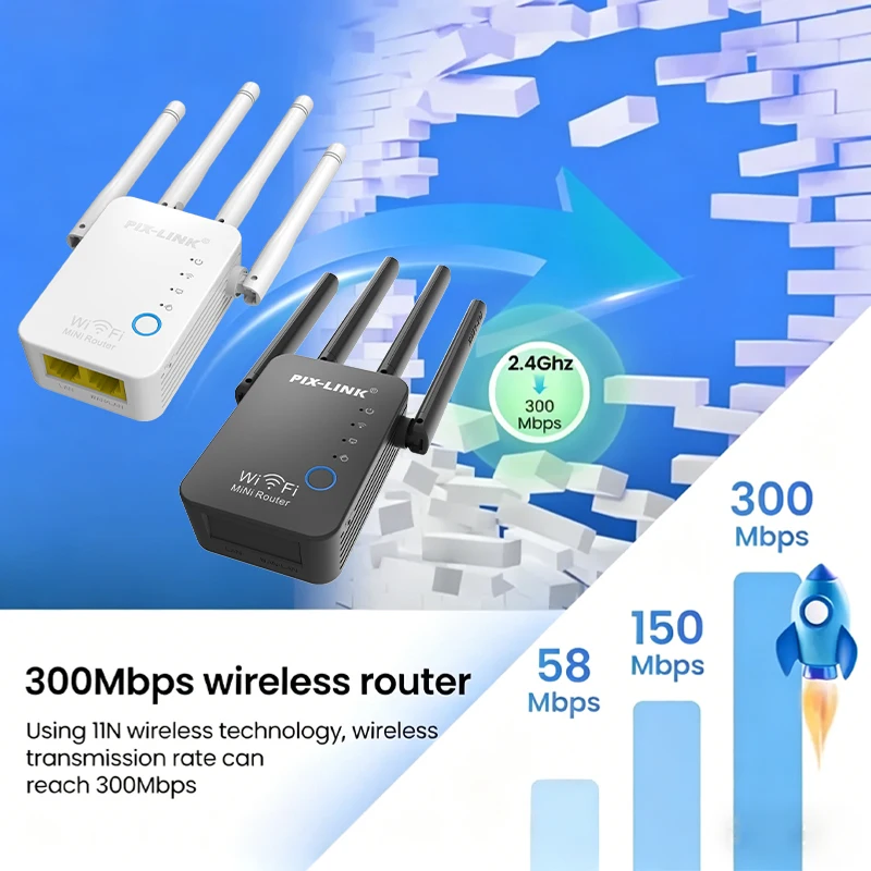PIX-LINK WR16Q 300Mbps WiFi Repeater 2.4GHz Wireless Signal Extender 4 Antennas Wall Penetration WPS Easy Setup AP/Router Mode $15.79